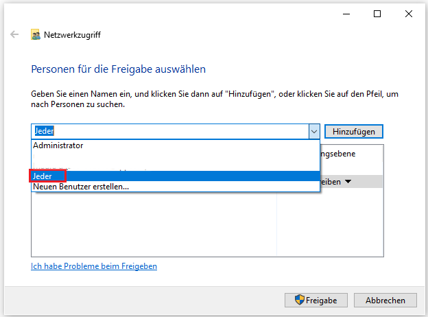 Schritt 4. Wählen Sie Jeder aus dem Dropdown-Menü aus und klicken Sie auf Hinzufügen.