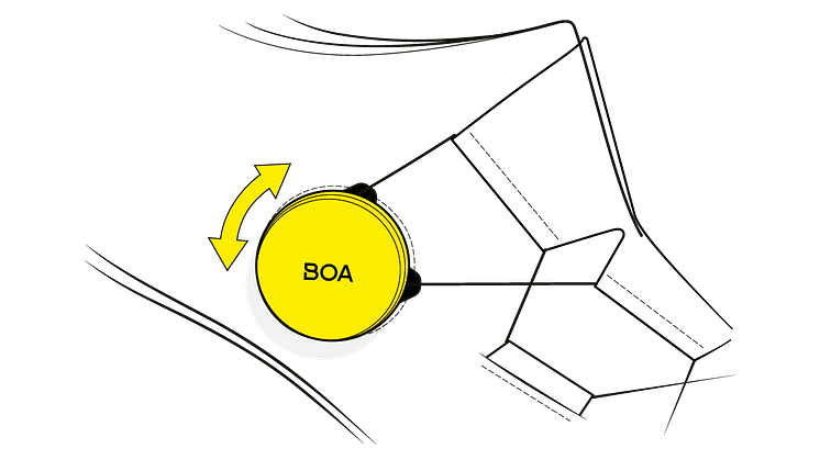 Die meisten Radprofis ziehen das BOA® Fit System Schnürsenkeln, Klettverschlüssen oder Ratschen vor. Mit dem in beide Richtungen verstellbaren Drehverschluss lassen sich BOA®-Schuhe präzise anpassen, d. h. enger oder weiter stellen, ohne dass sie ausgeklickt werden müssen. Das macht die Schuhe leicht und leistungsstark und verhindert, dass der Fuß rutscht und Effizienz verlorengeht – Fahrt für Fahrt.
