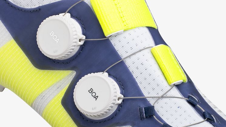 Mit dem BOA® Fit System können Radsportler ihre Passform jederzeit präzise anpassen, z. B. festziehen, wenn in besonders anspruchsvollen Abschnitten maximaler Halt gefragt ist, oder nach der Fahrt lockern – beides mit einem einfachen Dreh. Der neue Fizik Vega Carbon wurde in Zusammenarbeit mit BOA® entwickelt und sorgt mit seinem Dual Dial Li2 System für einen optimalen Fit mit separaten Einstellmöglichkeiten für den Rist- und Mittelfußbereich. Dabei sind zwei BOA®-Drehverschlüsse mit separaten Paneelen verbunden, die die Innenseite des Fußes umschließen. So lässt sich die Passform präzise an die individuelle Fußform anpassen – für zuverlässigen Halt und langanhaltenden Support.