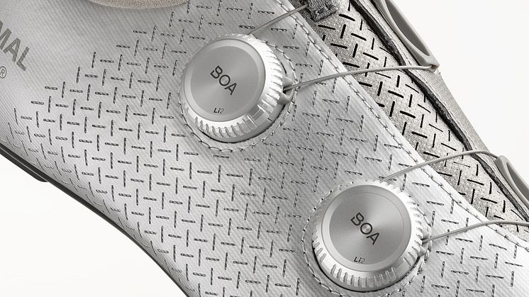 Der neue Rennradschuh von Fizik und Pas Normal verwendet den metallischen Li2 BOA® Dial, den Premium-Drehverschluss im Radsport. Die doppelten Li2 Drehverschlüsse in der Dual-Dial-Konfiguration ermöglichen eine äußerst präzise Passform – sie lassen sich in beide Richtungen drehen und schnell öffnen.