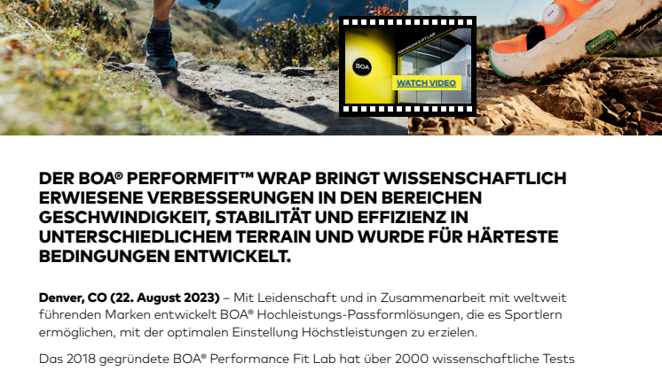 Mit The North Face und Kailas integrieren zwei weitere Marken den BOA® PerformFit™ Wrap in ihre Trailrunningschuhe, womit sie sich zu Brands wie Speedland, La Sportiva und Scarpa gesellen. Diese innovative, im BOA® Performance Fit Lab entwickelte Technologie verbessert wissenschaftlich nachweisbar die Geschwindigkeit, Stabilität und Energieeffizienz im unwegsamen Gelände. Der BOA® PerformFit™ Wrap liefert eine präzise Passform, indem er sich gleichmäßig an den Mittelfuß anpasst und so für einen optimalen Fersenhalt, eine bessere Verbindung zur Zwischensohle und mehr Bewegungsfreiheit im Vorfußbereich sorgt – alles entscheidende Faktoren für Top-Leistungen beim Trailrunning.