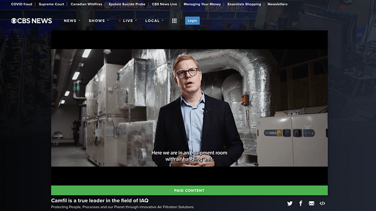 Camfil schließt sich Intel, Medscape und Microsoft in der CBS Thought Leaders Series an: Die Bedeutung der Luftqualität am Arbeitsplatz