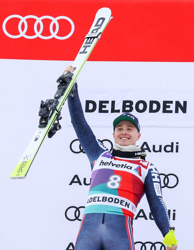 Von Platz fünf aus nahm Atle Lie McGrath den zweiten Durchgang in Angriff. In diesem verbesserte sich der Norweger um drei Plätze. Der 22-Jährige eroberte damit hinter seinem Landsmann Lucas Braathen Platz zwei und das erste Podium in der laufenden Saison. „Es war ein Traum von uns, dass wir einmal gemeinsam einen Doppelsieg schaffen. Ich bin deshalb so zufrieden. Und es war eine gute Revanche für 2021, als wir uns beide hier verletzt haben. Es ist heute alles gut“, analysierte Atle Lie McGrath im Ziel. Platz zehn ging an den Franzosen Alexis Pinturault, Platz 15 an den Bulgaren Albert Popov. Bester HEAD-Athlet beim Riesenslalom in Adelboden am Samstag war Alexis Pinturault als Sechster.