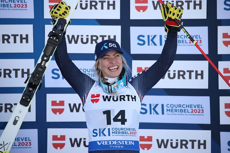 Über ihre zweite WM-Medaille nach Kombi-Bronze in Aare 2019 jubelte Ragnhild Mowinckel. Die Norwegerin fuhr am Donnerstag beim Riesenslalom wiederum Bronze ein. Nach Lauf eins nahm die 30-Jährige noch den fünften Platz ein. „Es ist unbeschreiblich. Ich habe heute alles versucht, habe gedacht, alles oder nichts. Und ich bin jetzt so stolz. Im zweiten Lauf habe ich den Druck gespürt, aber ich blieb fokussiert und bin wirklich sehr zufrieden“, analysierte Ragnhild Mowinckel ihr Rennen. Gold verpasste die Norwegerin nur um 22 Hundertstelsekunden. Weitere neun Hundertstelsekunden hinter ihr landete die Schweizerin Lara Gut-Behrami auf Platz vier. Neunte wurde Coralie Frasse-Sombet, Zwölfte Franziska Gritsch und 13. Sara Hector.