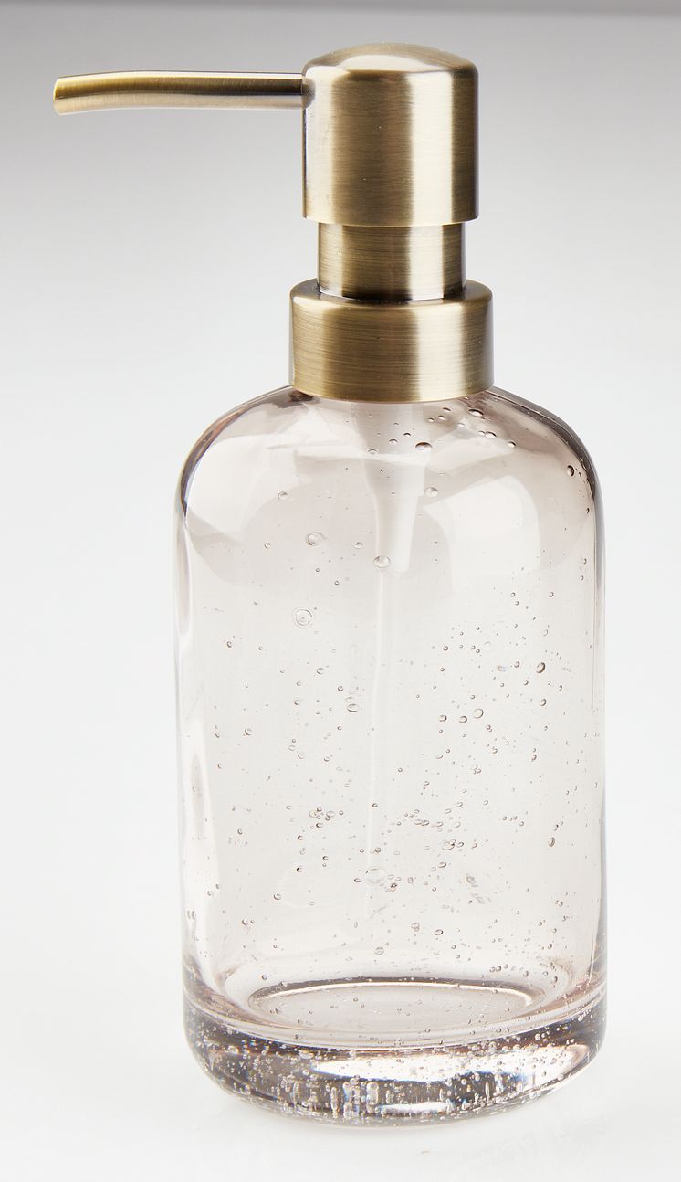 ESSVIK Seifenspender - aus 51% recyceltem Glas hält er durch seine transparente Farbe die Badezimmertöne neutral und ruhig.