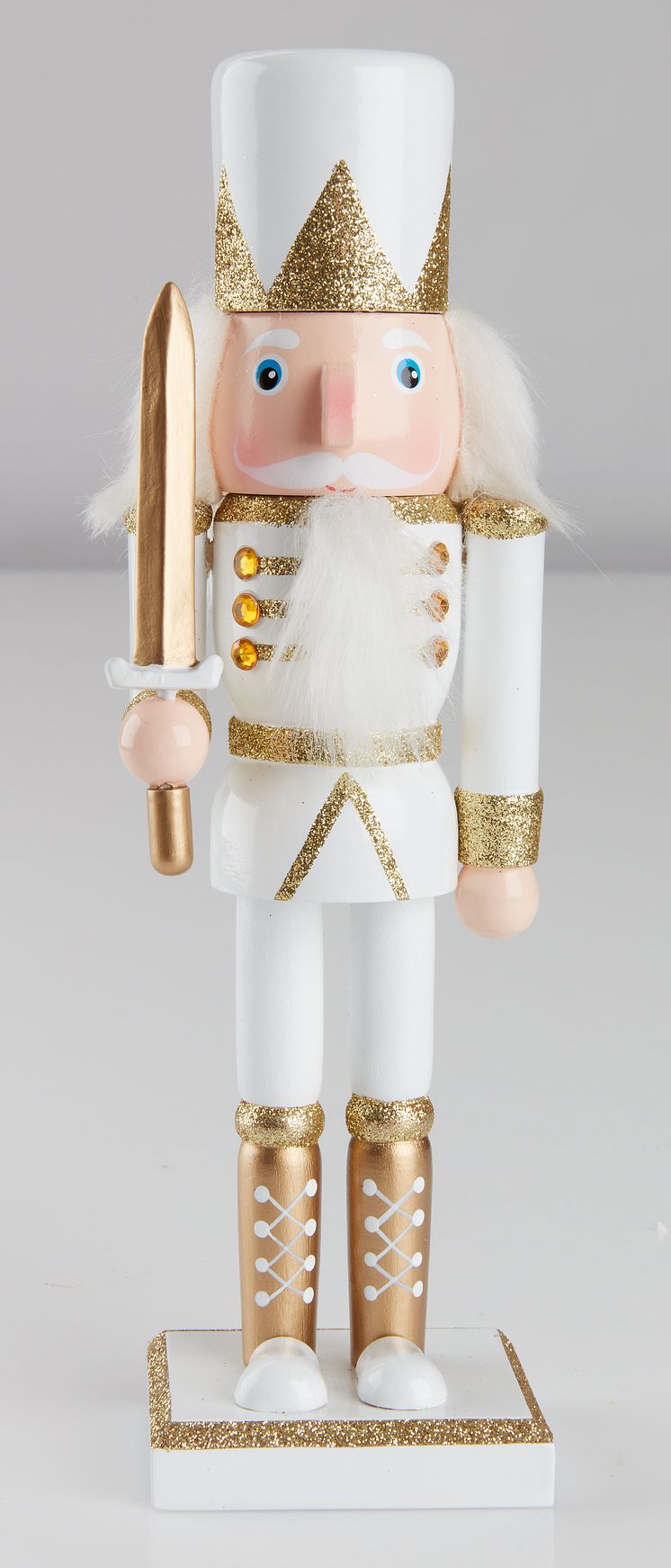 Der Nussknacker ist wohl in jedem festlich geschmückten Zuhause ein absolutes Muss. EUKLAS, DISER und VALI bringen diesen Weihnachtsdeko-Klassiker auch zu dir. Die Holzfiguren sind in verschiedenen Farben und Designs verfügbar, sodass für jeden Geschmack etwas dabei ist. Du magst es lieber schlicht und zurückhaltend? Dann ist EUKLAS in schwarz, grün und weiß der Nussknacker deiner Wahl. Die Figur ist 38 cm hoch und hat einen Durchmesser von 9 cm. DISER präsentiert sich traditionell in blau und rot und ist 50 cm groß. VALI setzt mit weiß und gold Akzente und ist 25 cm groß. Alle Figuren bestehen aus FSC-zertifiziertem und somit nachhaltigem Holz. (EUKLAS 11,50 € I DISER 20,00 € I VALI 8,00 €)
