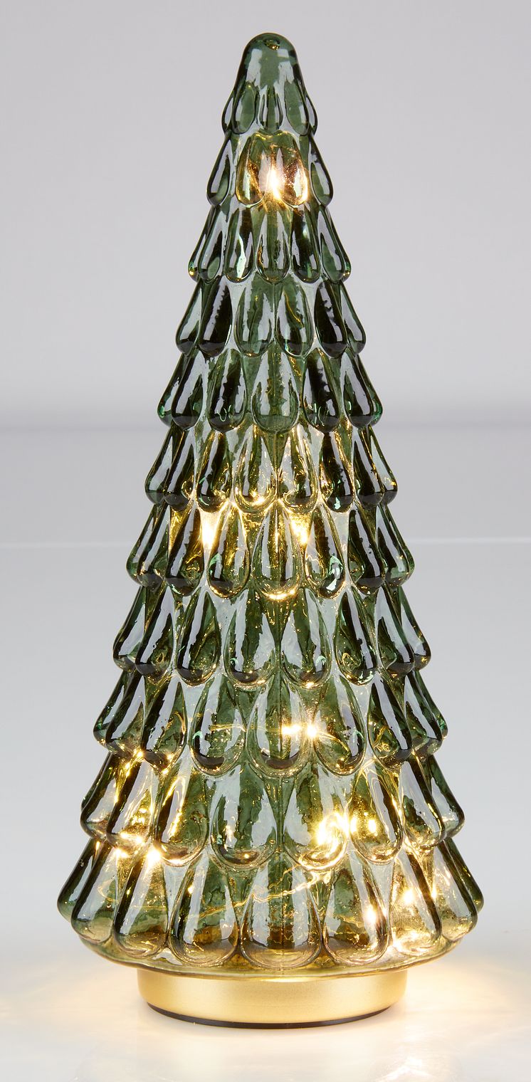 Im zarten, weißen Porzellandesign präsentiert sich unser XMAS Weihnachtsbaum GULDFLAGER. Vier LED-Lichter lassen den Baum leuchten und verbreiten besonders im dunklen Wohnzimmer eine hyggelige Weihnachtsstimmung. GULDFLAGER ist 29 cm hoch, hat einen Durchmesser von 14 cm und wird mit Batterien betrieben (12,99 €). Du magst es etwas bunter? Mit seinen verspielten Lichtern und seinen Farbtönen Grün und Gold, bietet MODGUNN viel Spielraum für die diesjährige Weihnachstdekoration und sorgt für eine angenehme Atmosphäre und definitiv für den richtigen Weihnachtszauber. MODGUNN ist 26 cm hoch und besteht aus Faserglas. (9,99 €)
