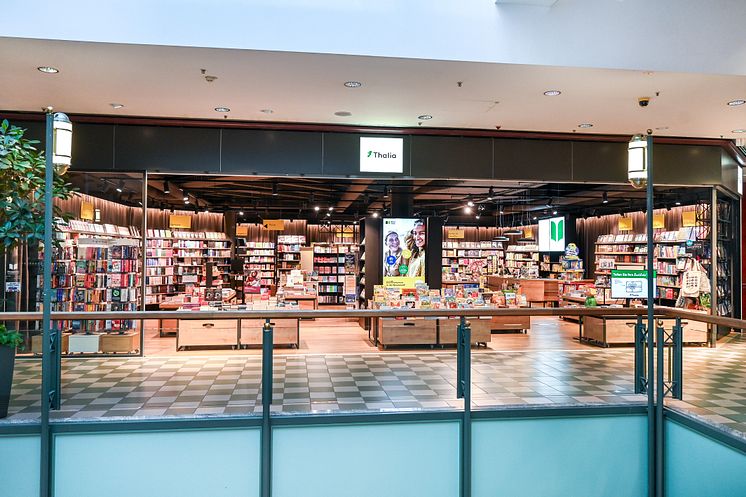 Blick auf den Eingang der neuen Thalia Buchhandlung im Messepark Dornbirn.