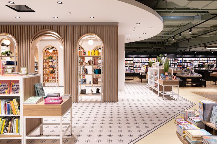 Durchdachte Raumgestaltung mit markanten Rundbögen, strukturierter Sortimentspräsentation und hochwertigen Materialien – ein stilvoller Ort zum Schmökern und Verweilen.