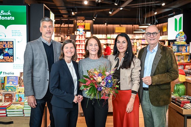 (v.l.n.r.) Christian Spitzauer (Expansionsmanager Thalia), Andrea Heumann (Geschäftsführerin Thalia), Anita Figo (Leitung Buchhandlung Dornbirn), Nicole Schedler (Geschäftsführerin Messepark Dornbirn), Mag. Guntram Drexel (JDL GmbH)