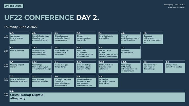 June 1-3, 2022: Urban Future is proud to kick off Helsingborg’s H22 City Expo. We invite the world to Sweden for an amazing 3-day program. Be inspired by the best, gain critical skills and know-how, and get to understand important trends. The conference tracks combine the expertise of more than 450 leading urban shapers, who have helped us tailor the content to our CityChangers’s needs.