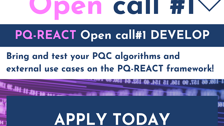 The PQ-REACT project invites Post-Quantum Cryptography enthusiasts to showcase their potential, innovative work, and results by applying to the project's Open Call #1-DEVELOP.