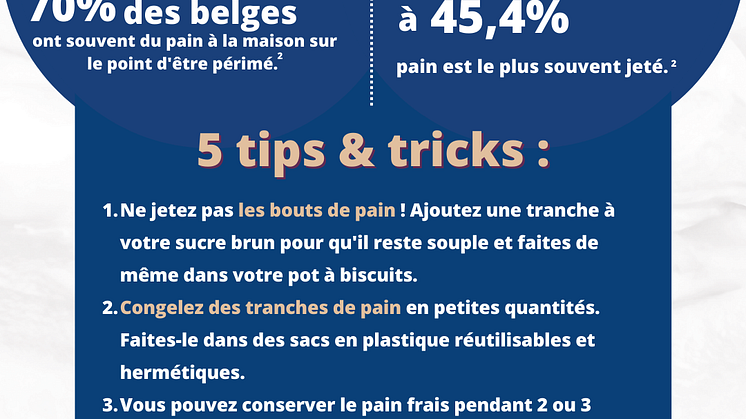 - Près de 70 % des Belges ont parfois ou très souvent du pain à la maison sur le point d’être périmé.