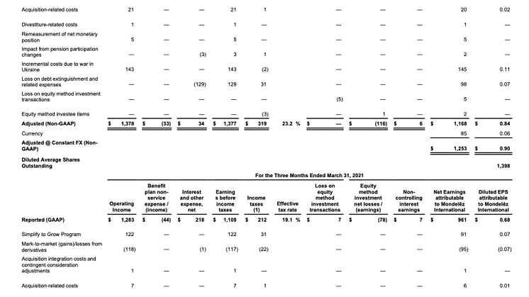 Mondelēz International, Inc. (Nasdaq: MDLZ) reported its first quarter 2022 results.