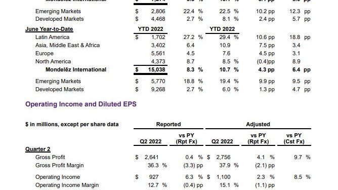 CHICAGO, Ill. – Mondelēz International, Inc. (Nasdaq: MDLZ) reported its second quarter 2022 results.