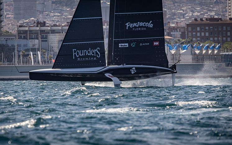 ‘Patriot’, the New York Yacht American Magic racing yacht competing in the 2024 America's Cup in Barcelona, Spain