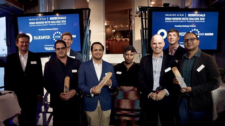 Stockholm, Sweden, Tuesday 28 August – The winners of the 2018 Urban Drinking Water Challenge, a global innovation competition to deploy and scale decentralized drinking water solutions for fast-growing, water-scarce cities, were showcased at an award ceremony Monday evening hosted by Founding Partners Bluewater and 11th Hour Racing as well as Imagine H2O.