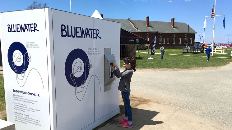 “Bluewater welcomes visitors to the Volvo Ocean Race Village in Newport, Rhode Island, to try drinking water that is as pure as nature intended and free of contaminants such as lead and micro-plastics,” said Anders Jacobson, President of Bluewater, the Swedish water company that’s disrupting the beverage industry by battling the use of disposable plastic bottles. Each Bluewater water station can deliver up to 1,850 gallons (7,000 liters) of unadulterated water every day, which means people using their own glass or metal containers will save the use of around 14,000 16.9 fluid oz. (500 ml) plastic bottles.
