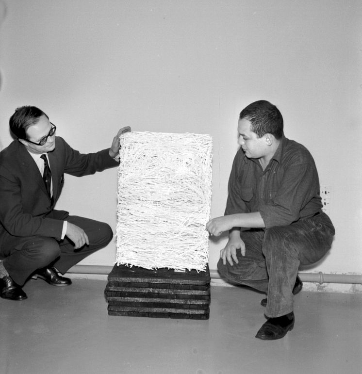 Aage Damgaard and Piero Manzoni with a “Achrome” artwork (Herning 1960-61)