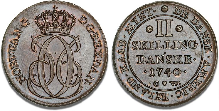 Christian VI, 2 skilling 1740 (Danish West Indies)