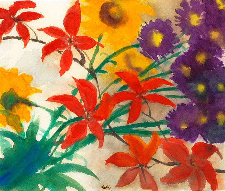 Emil Nolde: "Blühende Sommer", ca. 1935. Signed Nolde. Watercolour on Japan paper. Sheet size 22,8 x 27,3 cm. Estimate: DKK 1.2 mill. (€ 160,000)