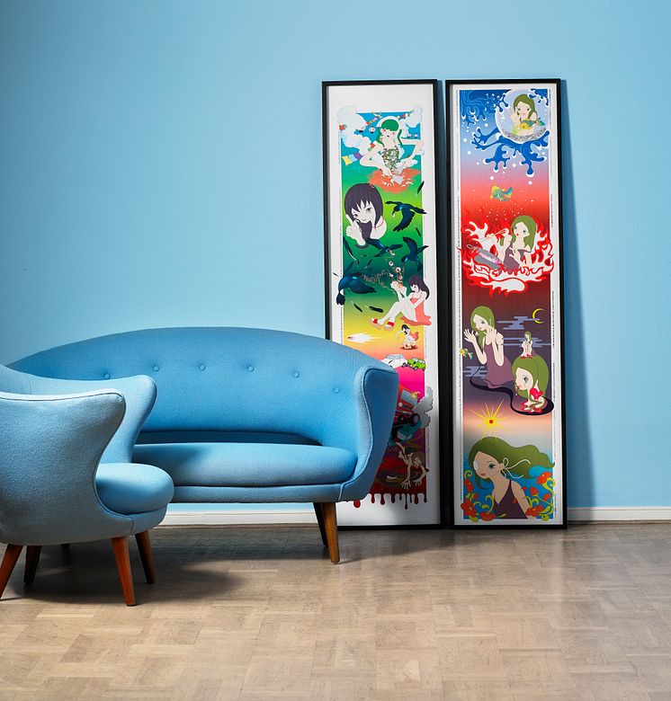 Finn Juhl sofa and easy chair and Shiho Aoshima "Foot of the squid" and "Golden Fish" (1999)