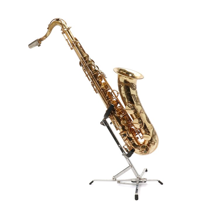 Selmer Mark VI (1967). Tenor saxophone No. M140974, engraved with current owner's signature "Jesper Thilo". These types of saxophones with low production numbers are today famous for their fine sound and are known under the moniker "Ancient Horns". Originally acquired by Ben Webster directly from the Selmer factory in 1967. Hereafter acquired by the current owner Jesper Thilo. Estimate: DKK 100,000.