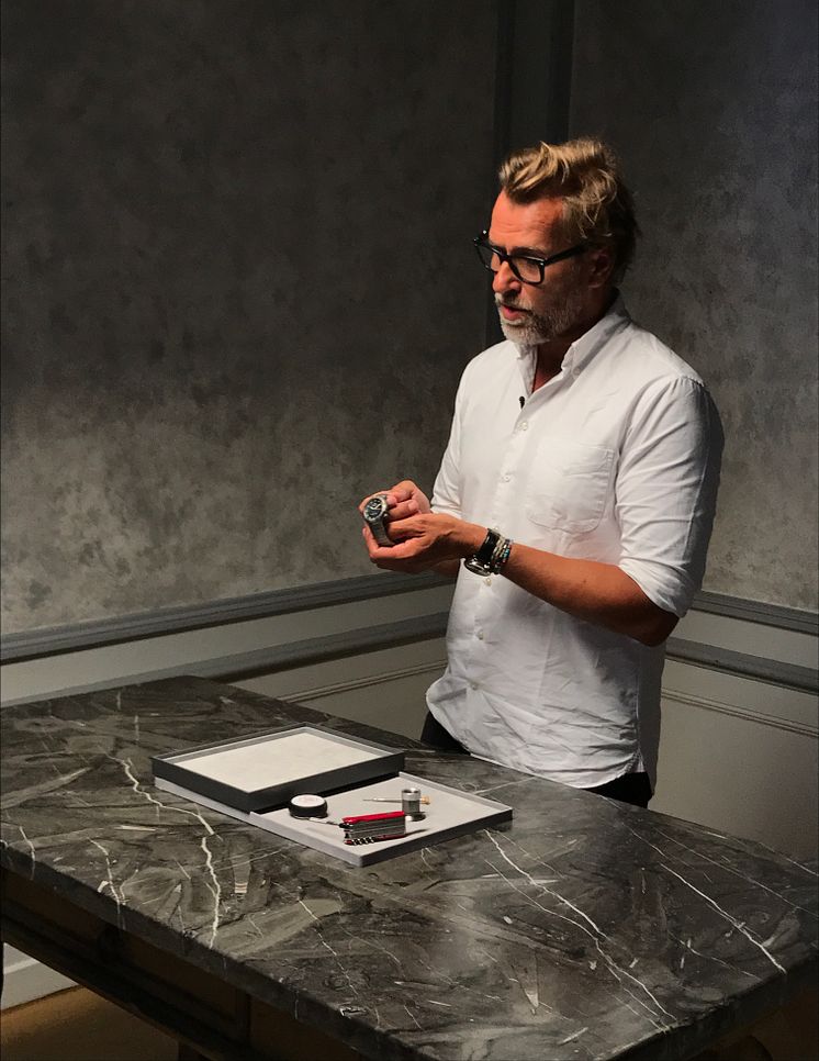 Kristian Haagen with IWC Model Porsche Design Ocean 2000 from the 1990s. Estimate: DKK 25,000-30,000 (€ 3,350-4,050)