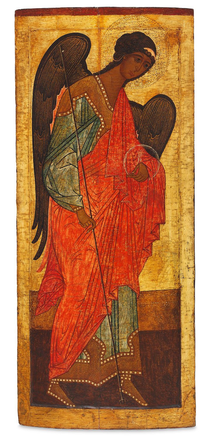 The Novgorod School, c. 1500: Large Russian iconostasis church icon depicting St Michael the Archangel. Tempera on wooden panel. 127.5 x 55 Hammer price: DKK 4.1 million (€ 551,000 / € 716,000 including buyer's premium).