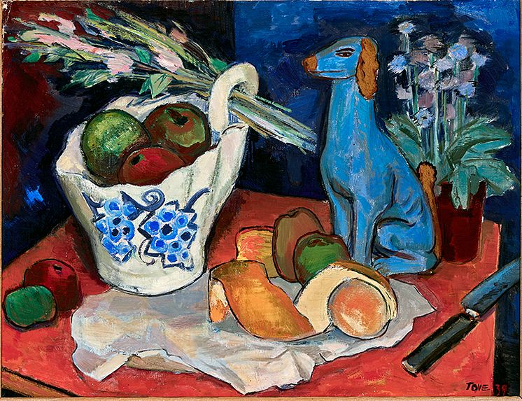 Tove Jansson- Opstilling, 1939. Signeret. Olie på masonit. 50 x 65 cm. Vurdering 350.000-400.000 kr.