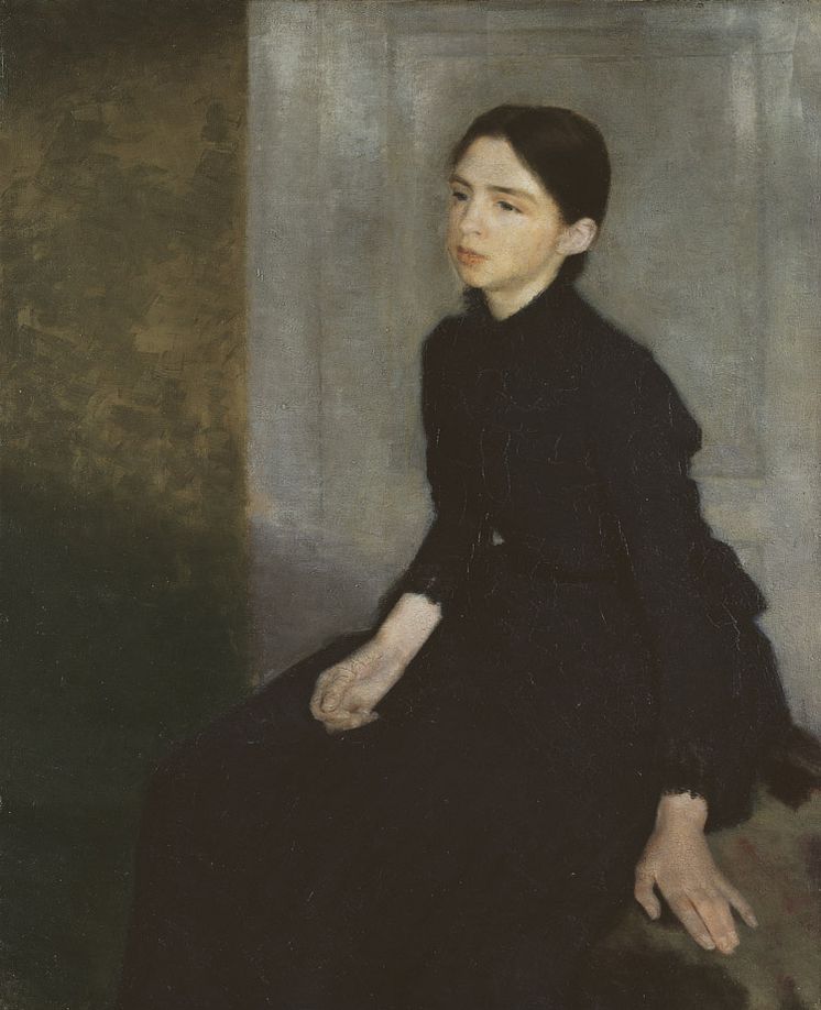 Vilhelm Hammershøi- ”Portræt af en ung pige”, 1885. I dag på Den Hirschsprungske Samling.
