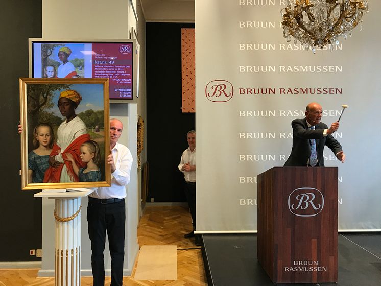Wilhelm Marstrand: Portrait of Otto Marstrand's two daughters and their nanny. 1857. Unsigned. Oil on canvas. 89 x 67 cm. Estimate: DKK 600,000-800,000 / € 80,000-110,000. Hammer price: DKK 900,000 (€ 120,000) / Including buyer's premium DKK 1.17 mill. (€ 156,000)