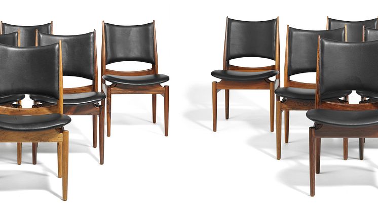 • Hans J. Wegner: "Dolphin Chair". Rare oak folding chair with seat and back of woven cane. Made by cabinetmaker Johannes Hansen. Estimate: DKK 400,000-500,000 / € 53,000-67,000.
