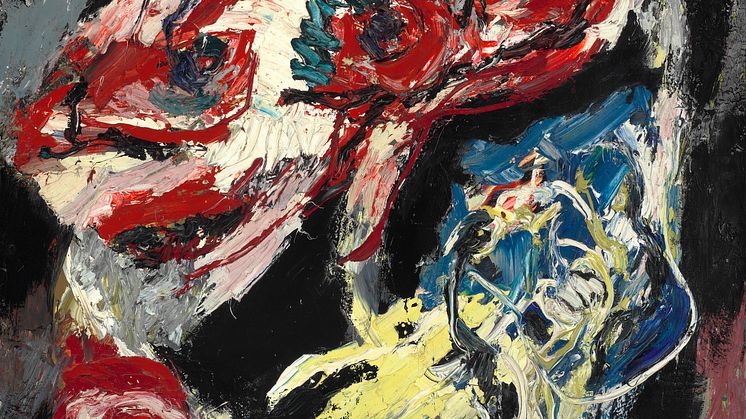 • Karel Appel- Grosses Tier verschlingt kleines Tier (Det store dyr sluger det lille dyr), 1958. Sign. C.K. Appel. Olie på lærred. 162 x 130.