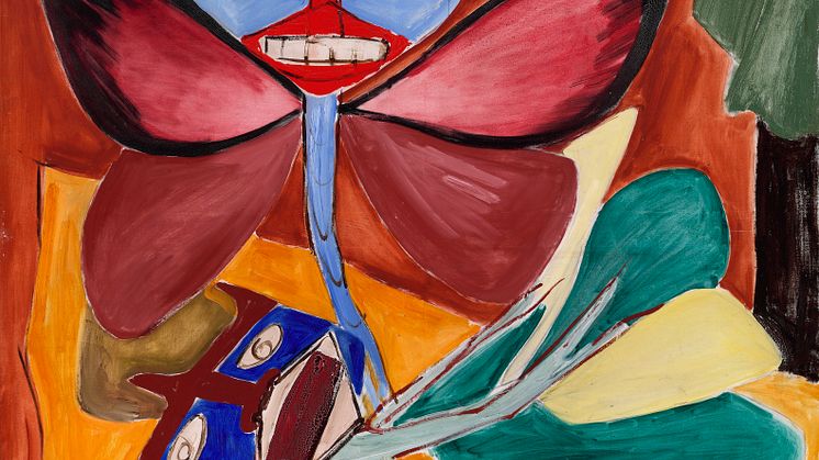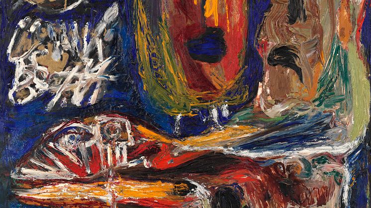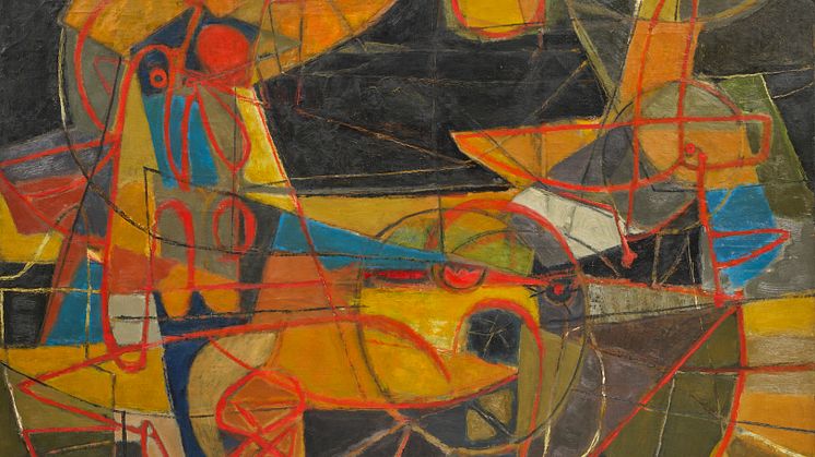 • Asger Jorn- Le forgeron aveugle - d'une mythe muet. Sign. Jorn samt sign. på bagsiden Jorn 1956 med titel. Olie på lærred. 100 x 80