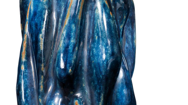 • Axel Salto- Vase af stentøj modelleret med smal munding. Dekoreret med Blåmusling glasur. H. 23,2.