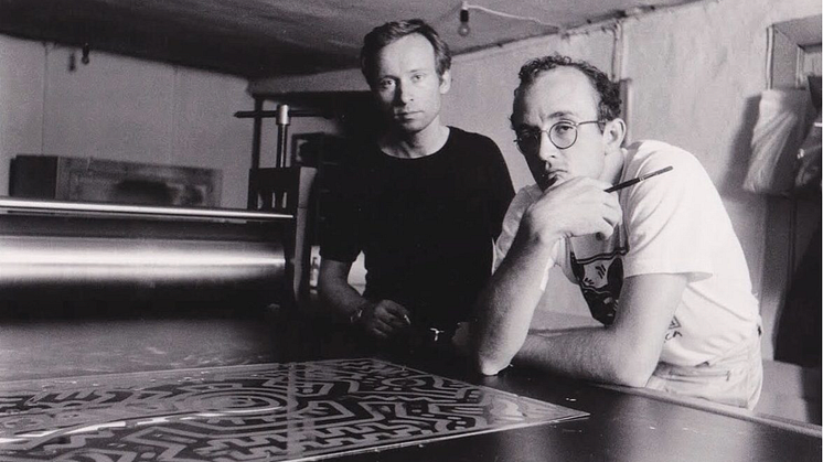 • Niels Borch Jensen and Keith Haring, 1986. Photo courtesy of BORCH Editions.png
