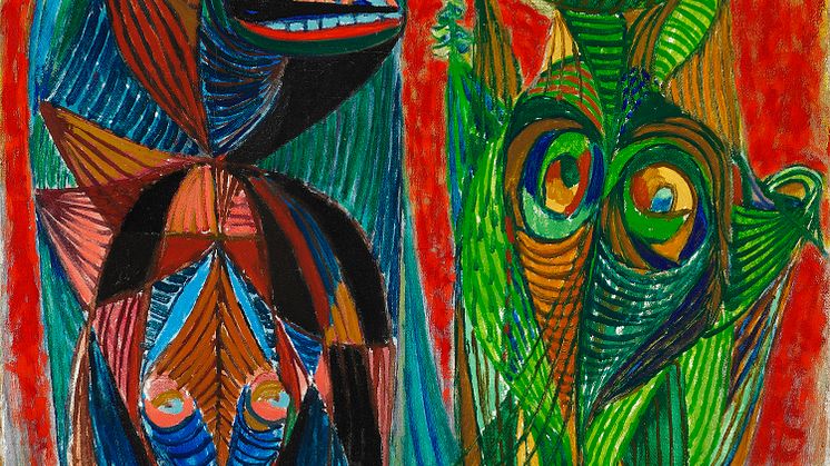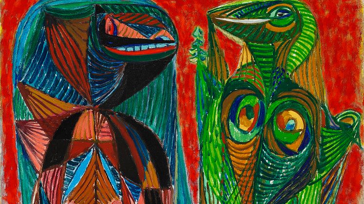 "Two bird-like fantasy animals represent the motif of the work from 1948, Jorn's early period. It was created on the island of Djerba, thus marking the end of one of Jorn's long journeys during the post-war years, where he started in northern Sweden, moved down through war-weary Europe and ended up on the Tunisian island. In the work, the imagination is allowed to run free and is mixed with inspiration from African masks and children's drawings. The later ideas of CoBrA are not hard to recognize in this work, and it is interesting to consider that only a few months later, a small group of artists from Denmark, Belgium and Holland, including Jorn, Christian Dotremont and Karel Appel, all met at the café of Hotel Notre Dame in Paris and established the legendary artist group," says Niels Raben, Head of Bruun Rasmussen's Department of Modern Art.
