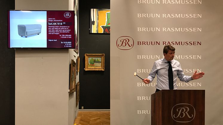 "Flemming Lassen's furniture is extremely sought after on the international design market. The auction's two highest hammer prices were achieved with furniture designed by this architect, as his iconic armchair "The Tired Man" was sold for DKK 590,000 (€ 103,000 including buyer’s premium). We still hold the world record on this model, where a price of DKK 1.42 million (€ 247,000 including buyer’s premium) was achieved in 2014. Flemming Lassen is therefore the Danish architect whose furniture has achieved the highest prices at our auctions," says Peter Kjelgaard, Head of the Department of 20th Century Design and Decorative Art.
