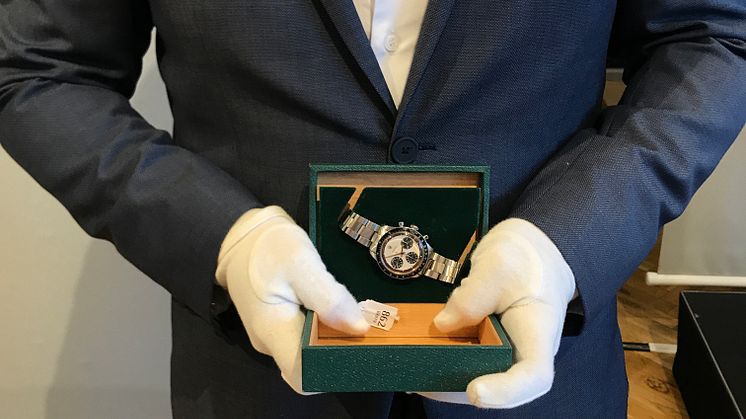 "We are so proud of the impressive hammer price, which shatters all previous price records for wristwatches at our auction house. Our current record for wristwatches is from December 2017, where we sold a Rolex Stelline for DKK 1.175 million. I was present when the record-breaking Rolex Daytona was consigned to our auction. This took place at a valuation event at KUNSTEN art museum in the city of Aalborg, where a married couple came in with the iconic watch without knowing what it was worth. They were expecting an estimate in the area of DKK 30,000-40,000 but were a bit shocked when the valuation landed on DKK 800,000-1,000,000. As the couple watched the sale of the wristwatch in the saleroom Thursday evening, they were almost euphoric over the record hammer price for the watch, which had been hidden away in a bank box for many years. This story is a true ray of sunshine to cap off an already very sunny month of May here in Denmark," says Casper Behrendtzen, Head of Bruun Rasmussen's Wristwatch Department.