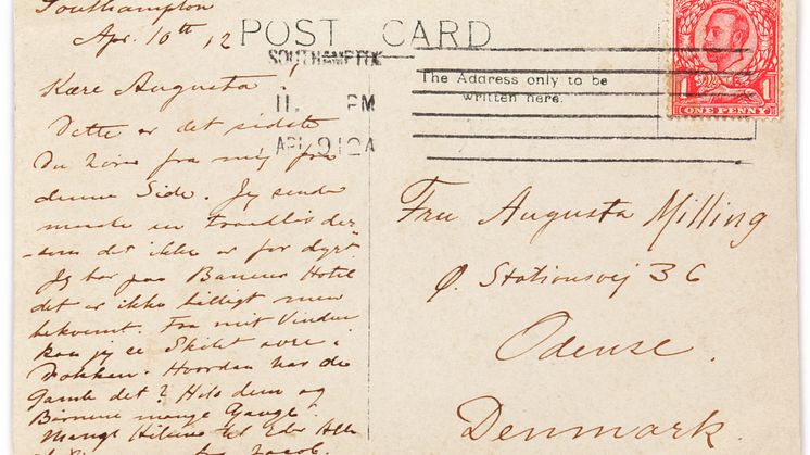 At Bruun Rasmussen's anniversary auction on 27 November, we turn our attention to a historic moment at sea. This takes place with the sale of a postcard sent by the Dane Jacob Christian Milling to his wife in Odense only a few hours before the "unsinkable" RMS Titanic set out from the southern coast of England.