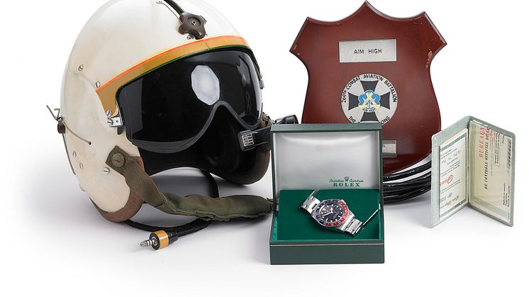 • Included with the watch is Captain Sprinkel’s helicopter helmet, Rolex box, original certificate and receipt.