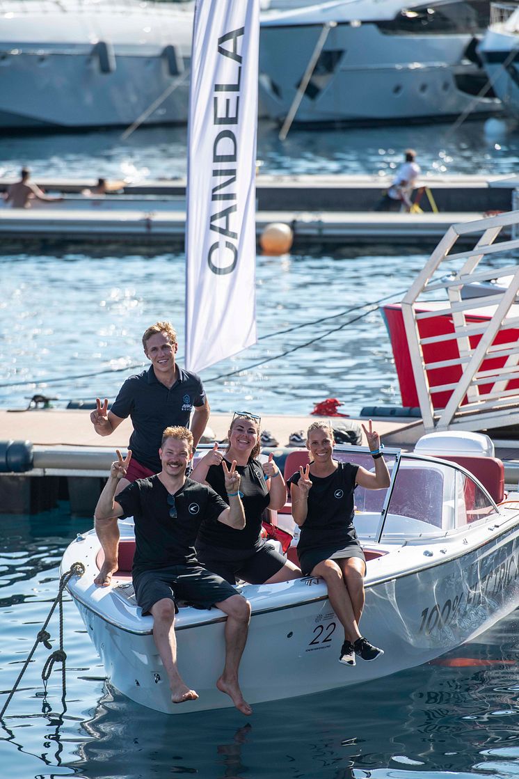The Candela team in after winning the YCM International Speed Record for electric boats in Monaco.