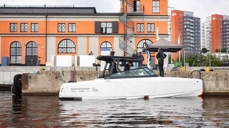 The record run was enabled by Northvolt's mobile battery storage system Voltpack, which was used to DC charge the C-8 during the record run. On the dock stood a 281 kWh Voltpack system, and a Plug DC charger, which enabled rapid charging of the C-8's battery. The average speed during the 24-hour run was 17 knots, even when accounting for charging breaks. The route comprised a loop between Stockholm and the island of Tynningö, with DC charging after each lap.