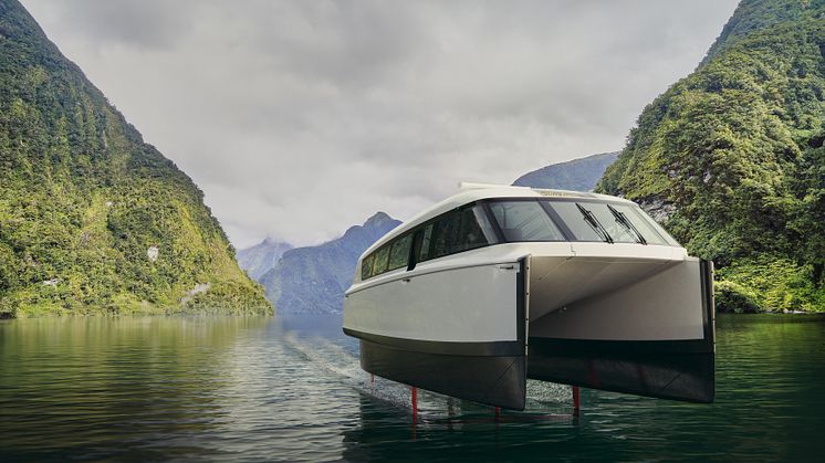 世界初の空飛ぶ電気水中翼船がニュージーランドの最も美しい湖に舞う
