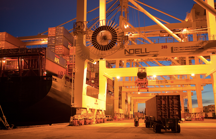 A Cavotec motorised cable reel powers an STS container crane at the Port of Oakland