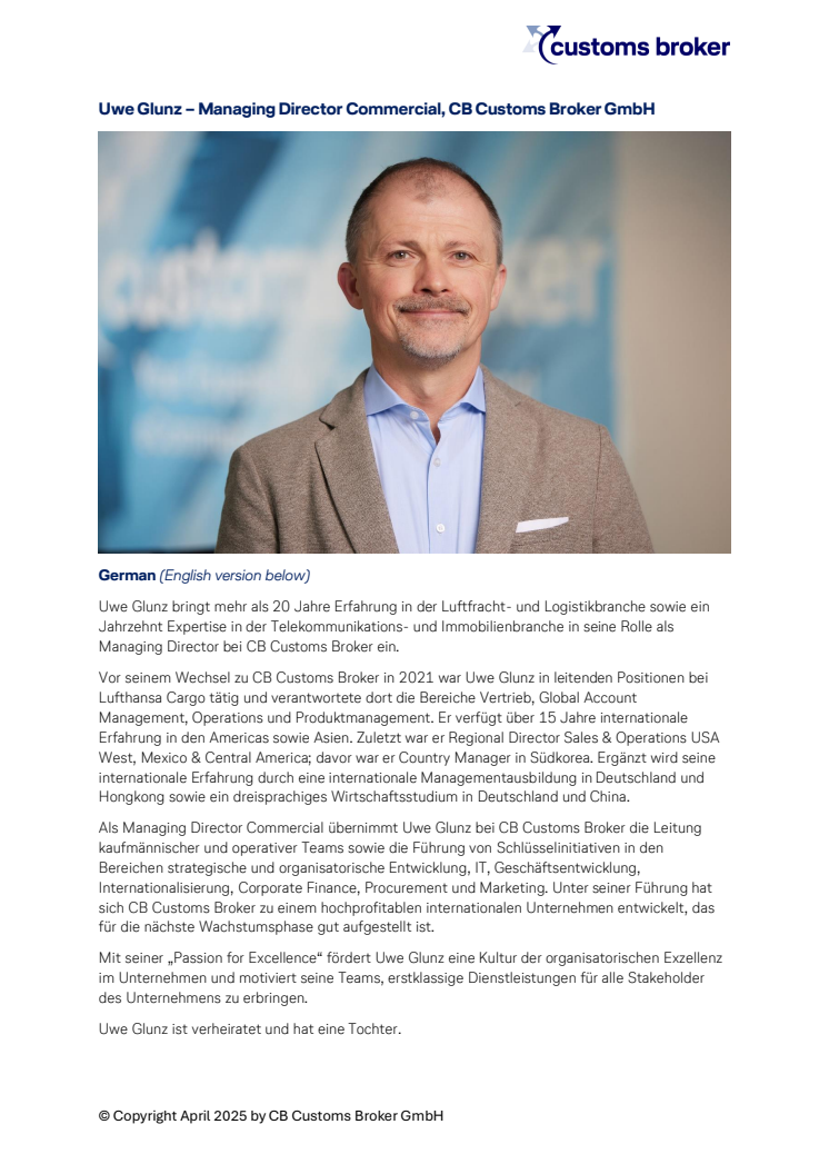 • Managing Director CB Customs Broker - Uwe Glunz