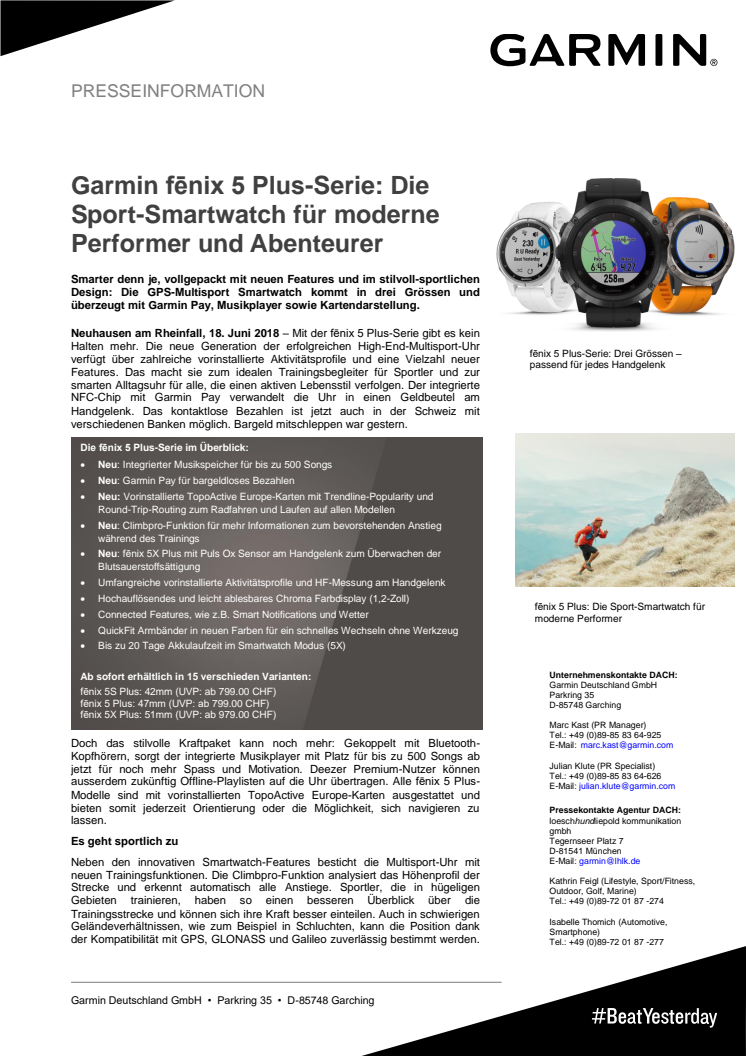 Garmin fēnix 5 Plus-Serie: Die Sport-Smartwatch für moderne Performer und Abenteurer