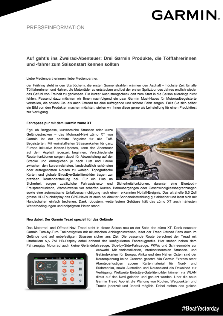 Mailing Garmin Start in die Motorradsaison 2022
