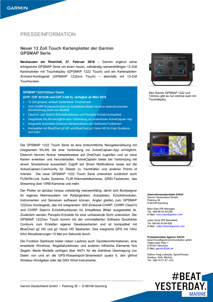 Neuer 12 Zoll Touch Kartenplotter der Garmin GPSMAP Serie